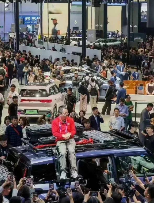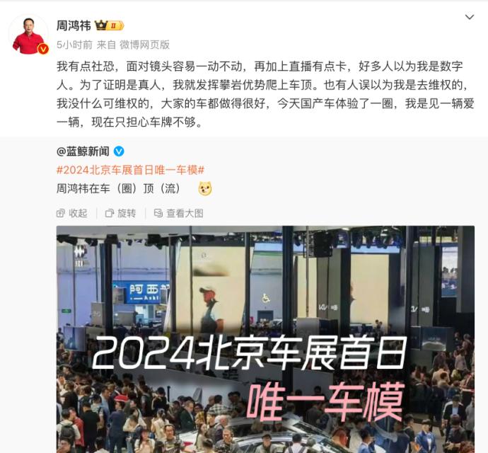 然后是在北京车展爬上车顶,成为当天最亮眼的“车模”。