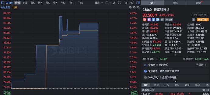 消息公布后,奇富科技股票大涨。截至8月14日午间收盘,奇富科技上涨5.06%,市值271亿港元。
