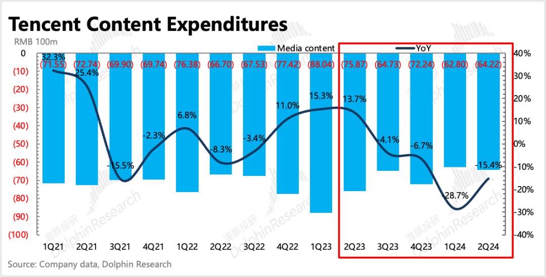 行业到顶,也是腾讯视频选择不断优化项目投入,专注ROI的方向转变的主要原因。近一年来腾讯媒体内容成本不断减少,二季度仍然同比下降15%,也体现了当下“少而精”的内容投资思路。