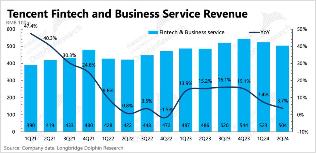 二季度金科企服同比增长3.7%,低于市场预期,这也是三大业务中最能体现宏观beta的板块。主要是因为收入占比70%为支付业务,而腾讯近期并未在支付上有新的可以带来增量的动作。