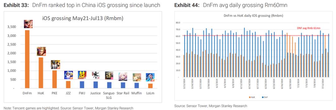 而从7、8月目前的畅销榜排名来看,DNFM持续位居第一,以及和平精英的持续回暖,因此对递延表现也不必过于介怀。