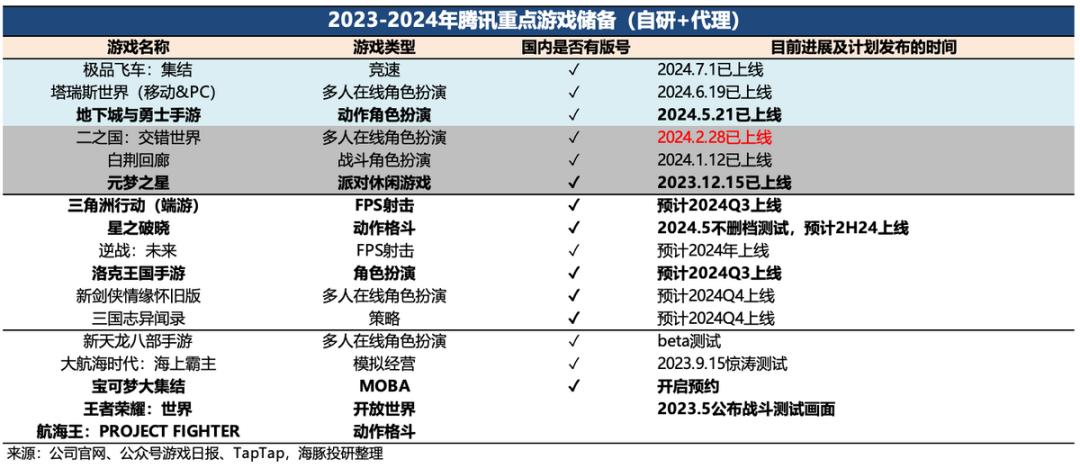 当然中长期下还需要持续的优质新品,以及对老游戏的运营创新。这都是过去几年腾讯表现欠佳的能力,尤其是前者。因此建议继续持续关注公司对游戏业务进一步调整以及Pipeline更新:三季度新品储备相比二季度要弱,看点主要是《三角洲行动》《洛克王国手游》、《星之破晓》,7月已上线的《极品飞车》表现低于预期,需要看后续如何通过运营来重新促活。