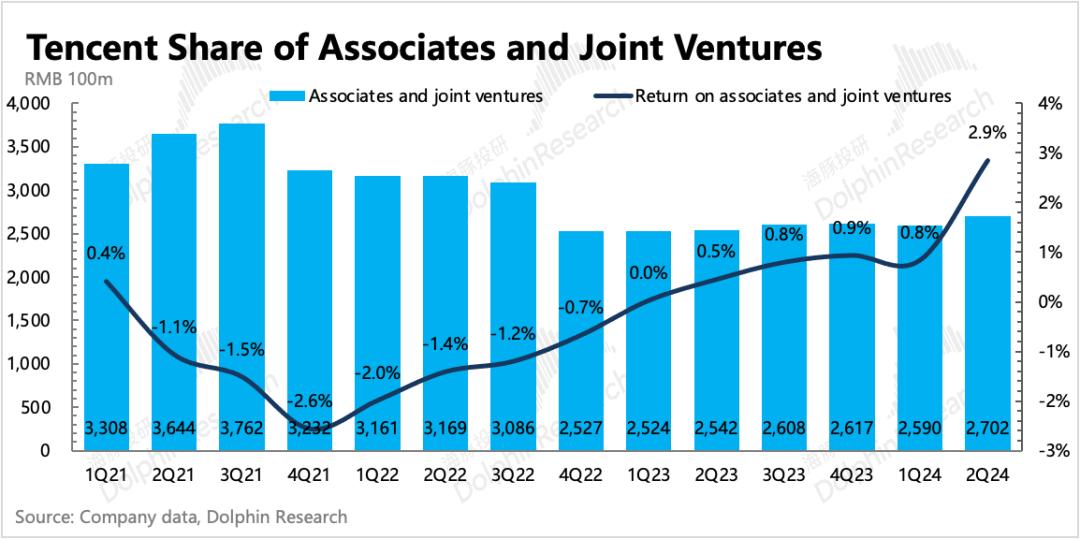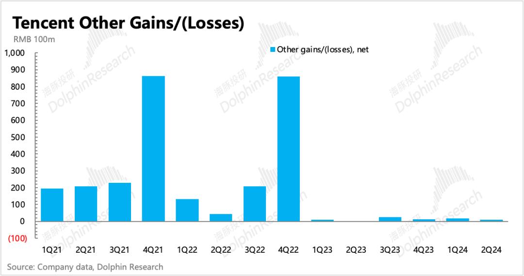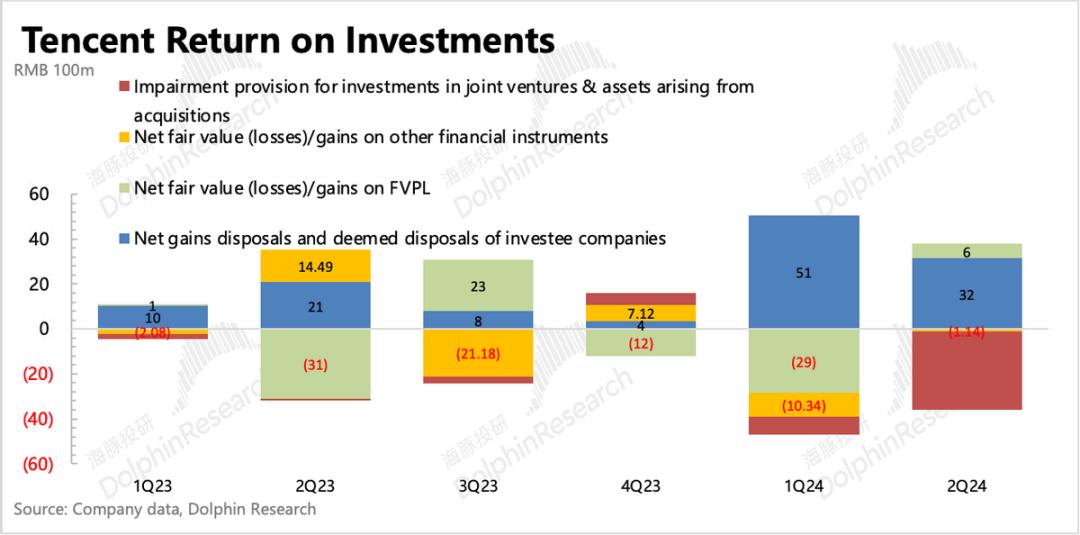 资产处置收益在年初明显增加后,二季度虽有放缓,但仍然存在显著增长。结合上季度公司表明的投资组合所需资金基本内部解决,不会再去动用投资业务之外的资金。回购压力+对AI等新技术的不缺位投资,可能会继续促使腾讯保持高于去年的投资性资产处置。