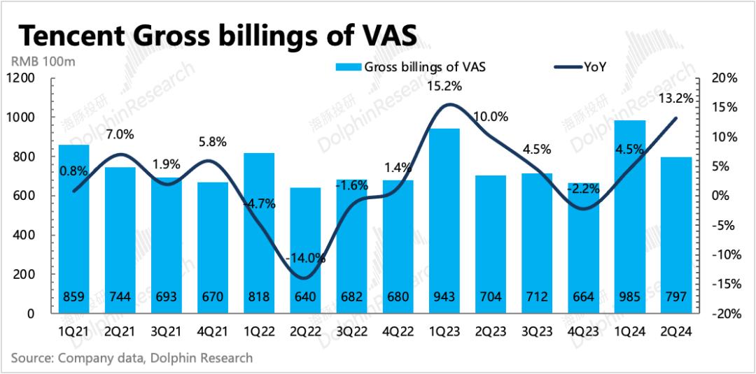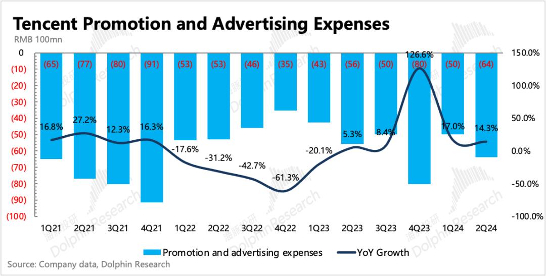 二季度腾讯的广告收入同比增速维持20%,高基数下,较一季度26%的增速自然放缓。虽然放缓,但在持续疲软的宏观消费环境下,这个表现已然不错。