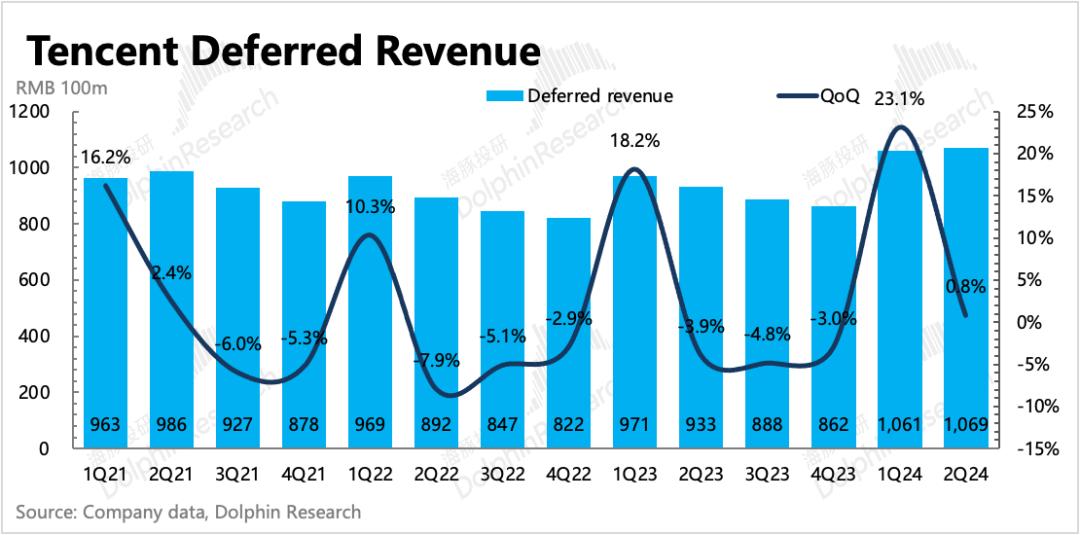 从递延来看,Q2同比加速修复,但环比持平。海豚君认为Q2虽有王炸级别的DNFM上线,但碍于Q2本身是淡季(递延环比走低是惯例)、行业压力(同比下滑)、DNFM仅贡献一个月流水等原因,这个递延表现也并不是不能接受。