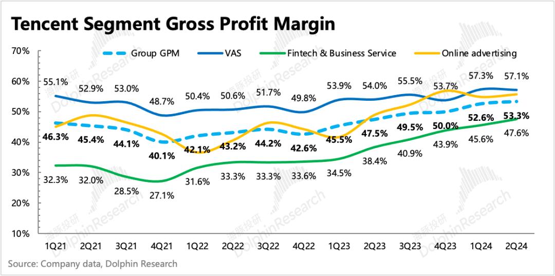 由于自身资源复用、业务结构变化(视频号广告、小程序游戏)带来的毛利率提升逻辑,已经持续讲了一年多,Q2延续改善趋势。