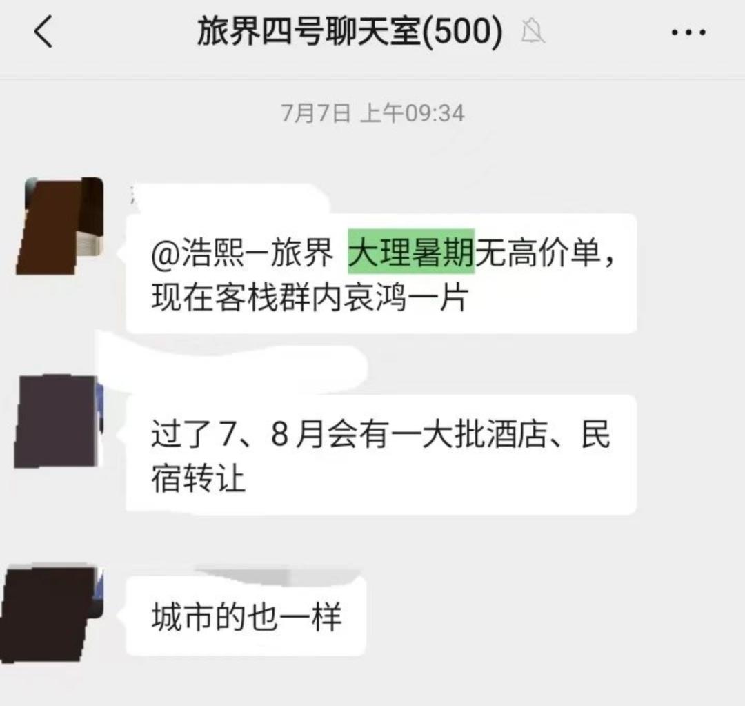 不仅丽江如此,之前在云南大理的认识的一批民宿、酒店业者近期也纷纷在旅界社群慨叹,“大理暑期无高价单,现在客栈群内哀鸿一片,过了7、8月会有一大批酒店、民宿转让。”