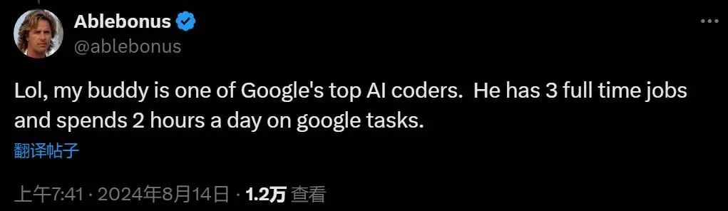 也有人想爆料:我认识个哥们在谷歌是顶尖程序员。不过他现在身兼三职,还都是全职,每天只花两个小时处理谷歌的工作。