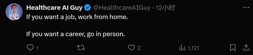 有网友评论道:如果你只想要个工作,在家办公就好了。但如果你追求一份事业,请现场办公。