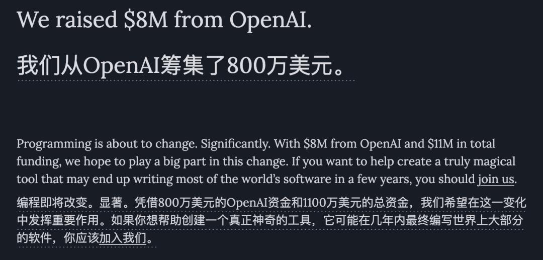 Cursor背后公司Anysphere,成立初期从OpenAI处拿了800万美元,占当轮融资的72.7%,按理说应该是铁杆的OpenAI一派。