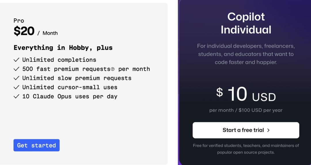 注意了,Cursor价格20美元/月,要比隔壁GitHub Copilot贵上一倍。