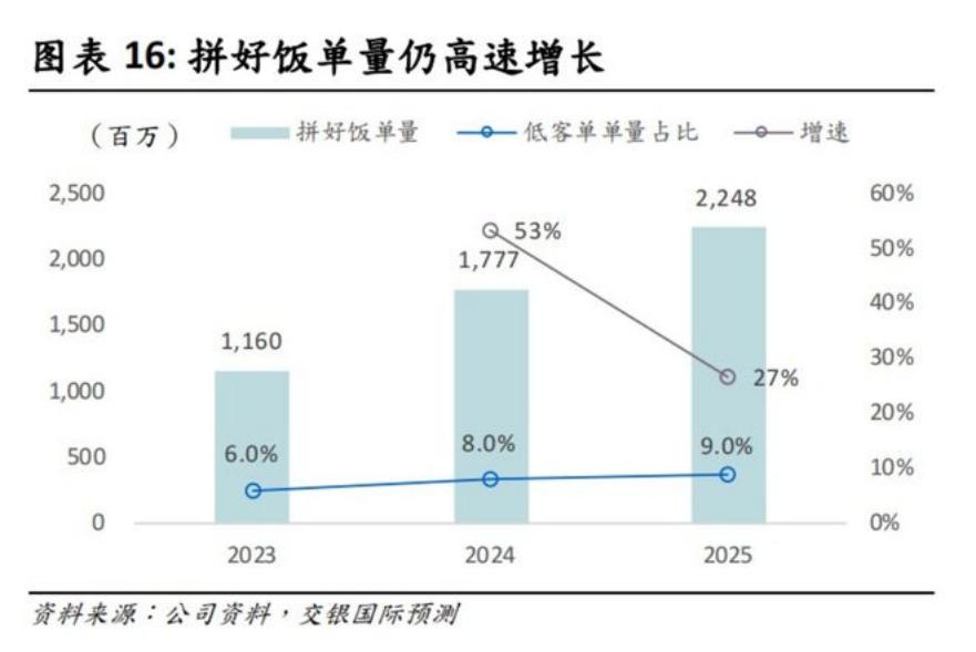 据交银国际估算,2024-2025 年“拼好饭”的单量占比还会继续提升至 8%-9%,按照这一增长速度来估算,“拼好饭”在美团外卖订单中的占比有望增加至达到20%。