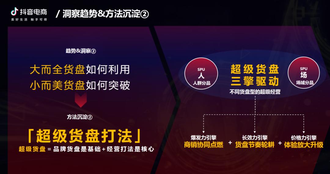 “超级货盘”的核心在于“货全”和“价优”:一是在抖音电商铺全货,并结合趋势潮流洞察及相关数据分析进行货盘前置规划与布局;二是提升该品牌商品的价格力优势,参与更多平台活动,激发用户购买意愿。