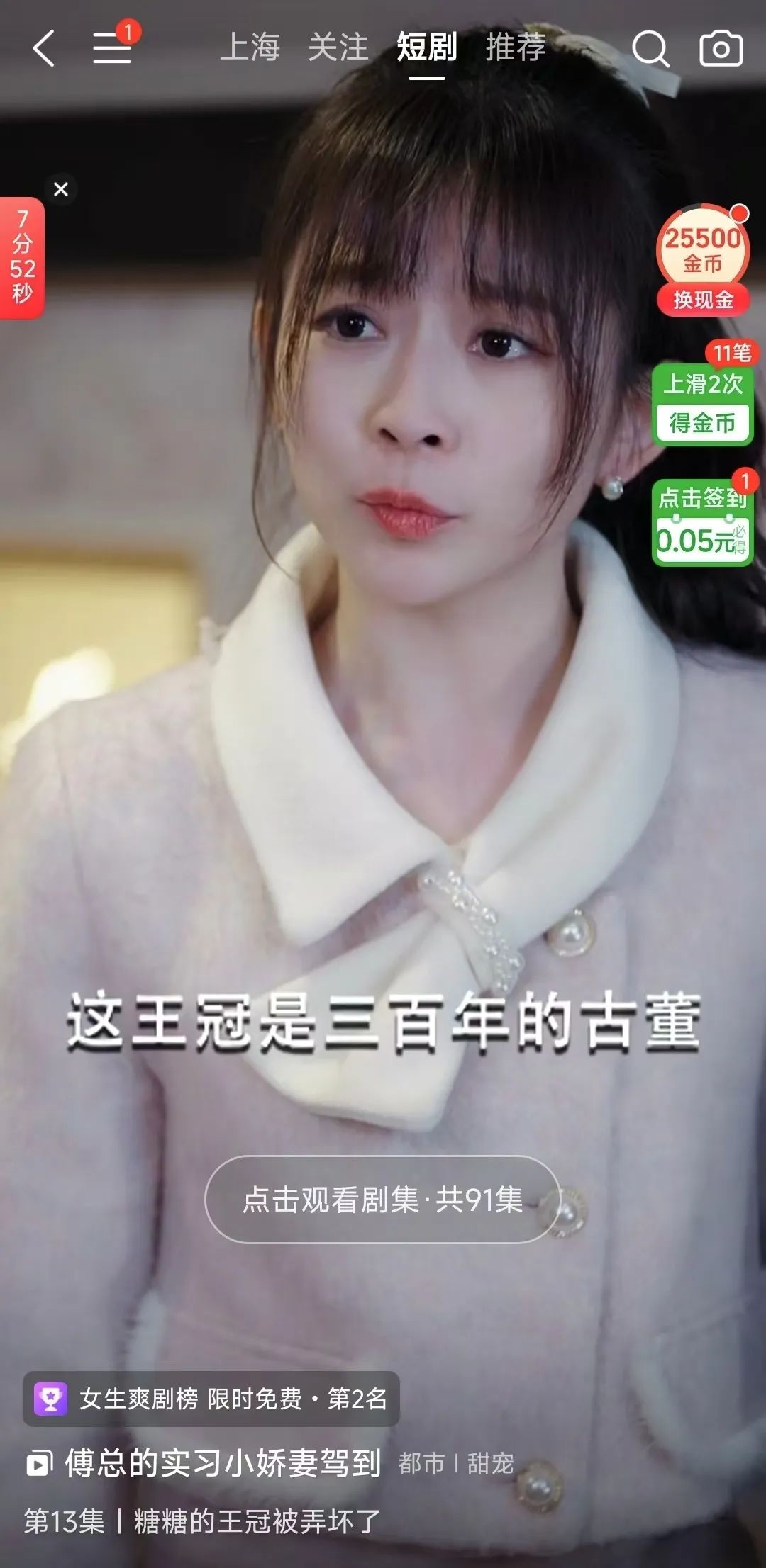于是在今年3月,美团又将短视频栏目进行改版,增加了剧场频道。到4月时,剧场频道中又增加了精选短剧内容。目前在美团APP上,“剧场”频道已经被改为“短剧”,并且上架的短剧均可免费观看。
