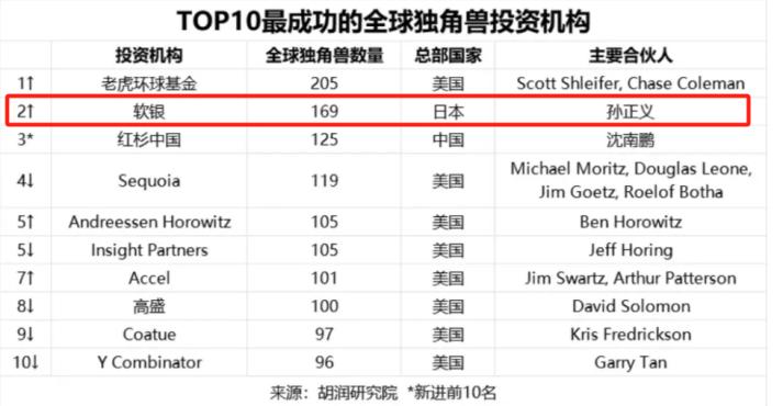 在最新全球独角兽榜单中,软银以投资169家独角兽的惊人成绩,稳居全球第二。