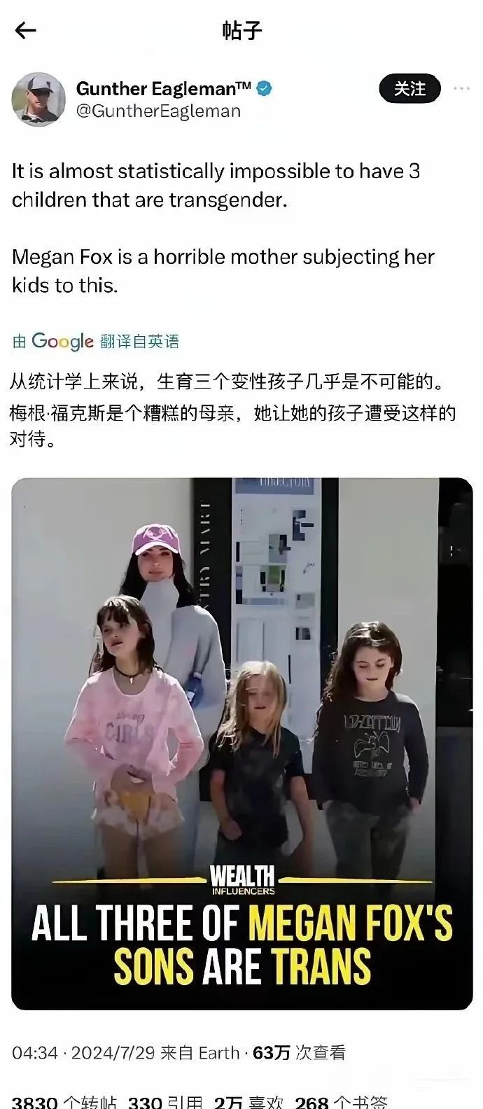 好莱坞女星梅根·福克斯和她的三个跨性别儿子