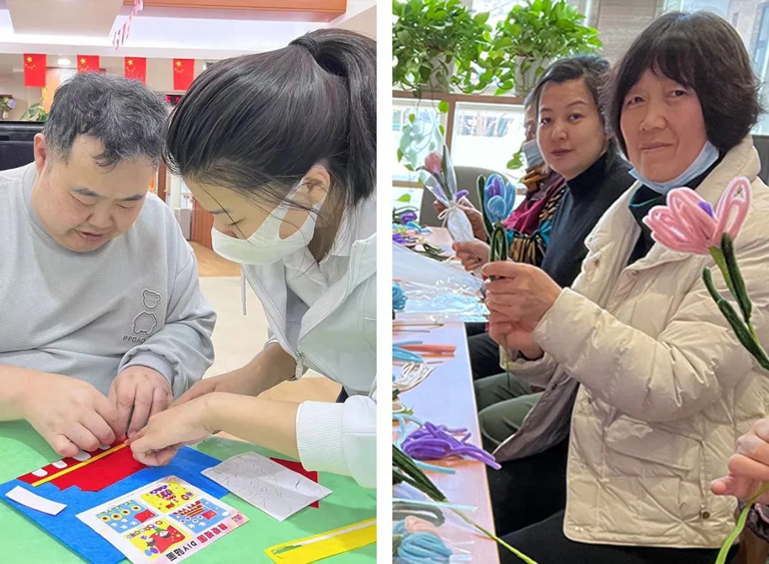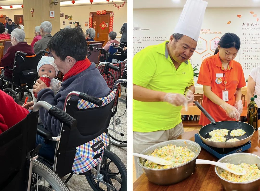 ▲左:养老院的失能老人;右:星星体验制作餐食