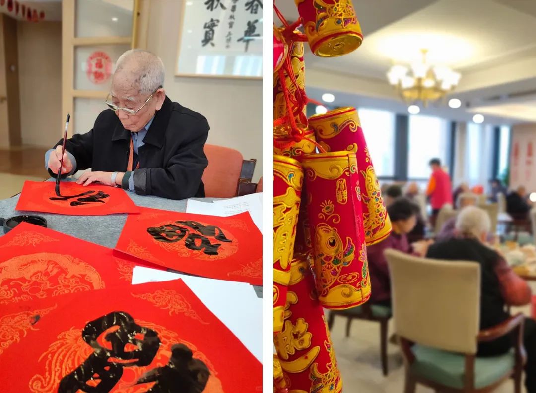 ▲过春节这天,更多是儿女过来陪伴,只有一小部分老人回家过年。老人们会写春联、一起吃年夜饭。