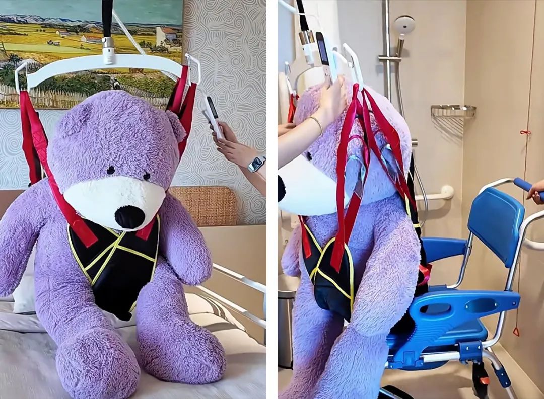 ▲小王探访的养老院辅助失能老人的设备,可以帮助老人起身、去厕所洗澡