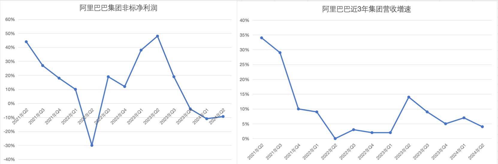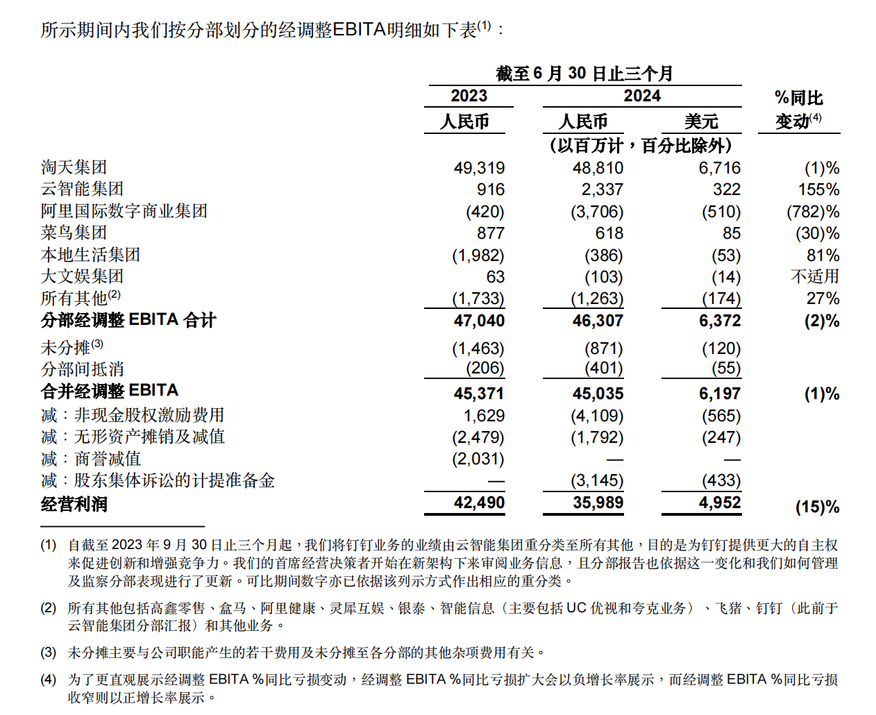 阿里集团二季度收入2432亿元,同比增长4%,较上个季度的7%继续放缓;经调整EBITA利润450亿元,同比下降了1%。