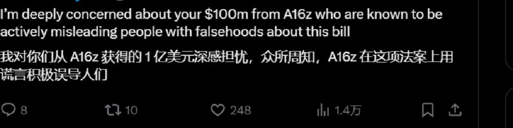 04 谁反对法案?a16z与YC带头开展宣传攻势,李飞飞杨立昆发推质疑