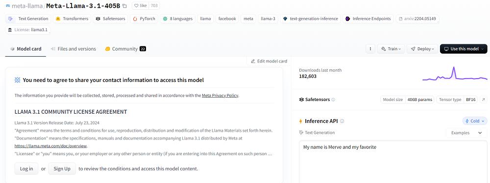 ▲Llama 3.1 405B相关信息(图源:Hugging Face)