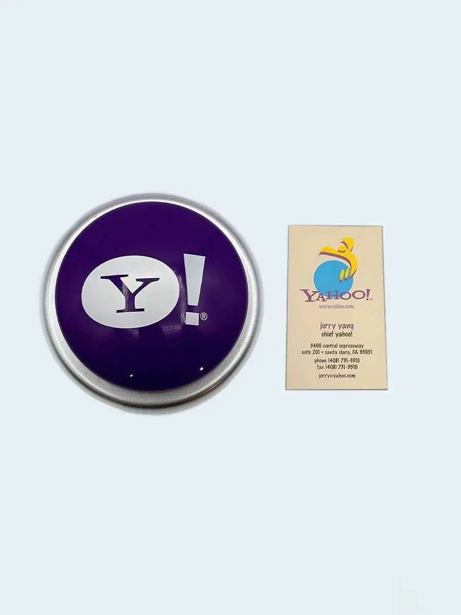 Yahoo 联合创始人杨致远的名片上,头衔还是「chief yahoo!」。卡片底部的网址则已经无法打开。