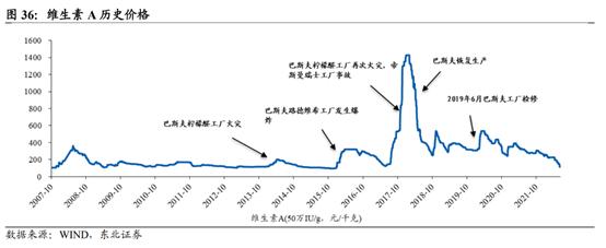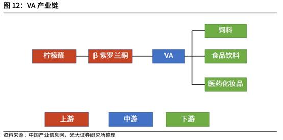 从下游需求来看,饲料领域的需求占压倒性优势,VA约占85%,VE约占70%。