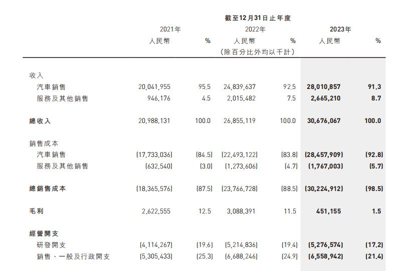 2021年~2023年的三年间,小鹏汽车研发支出分别为41.14亿元、52.15亿元及52.77亿元。今年第一季度,小鹏汽车研发支出则为13.5亿元。从2021年至今,小鹏已经在研发上支出159.56亿元,期间营收合计850.78亿元,研发支出占营收比例超18%,倘若仅计算2024第一季度,研发占营收比例将超过20%。