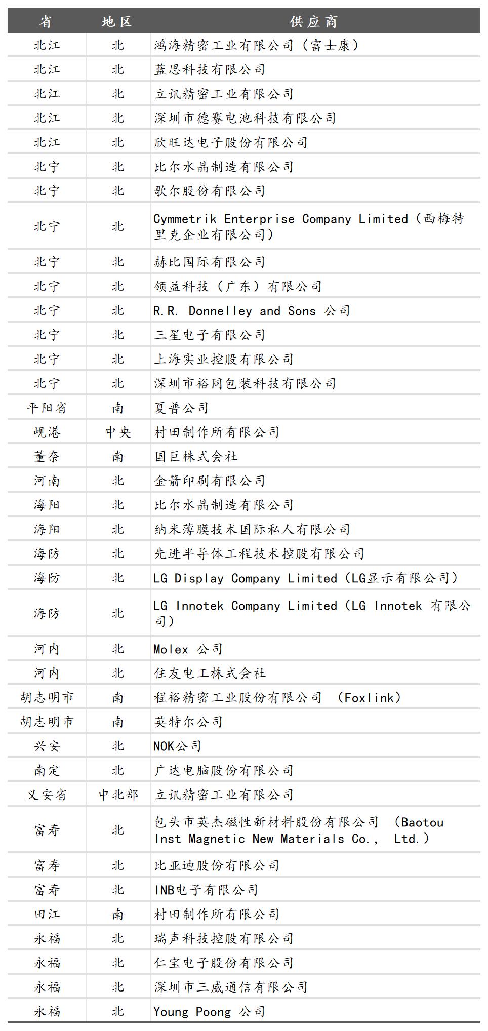 越南简报报道称,2024年苹果在越南新增8家“果链”企业,目前越南已包括35家“果链”企业。歌尔股份、立讯精密、瑞声科技、三星、LG等和苹果有密切业务往来的供应链厂商,主要分布在越南北部。
