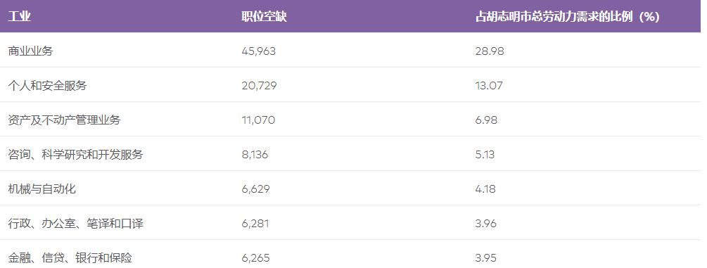 不仅仅是熟练工人,越南高层次人才严重匮乏。据胡志明市人力资源需求预测和劳动力市场信息中心(Falmi)数据显示,商业业务占胡志明市劳动力缺口比重高达28.78%。当年654家企业中有154家企业称招聘不易,这些企业主要从事批发和零售、制造和加工以及行政和支持服务。