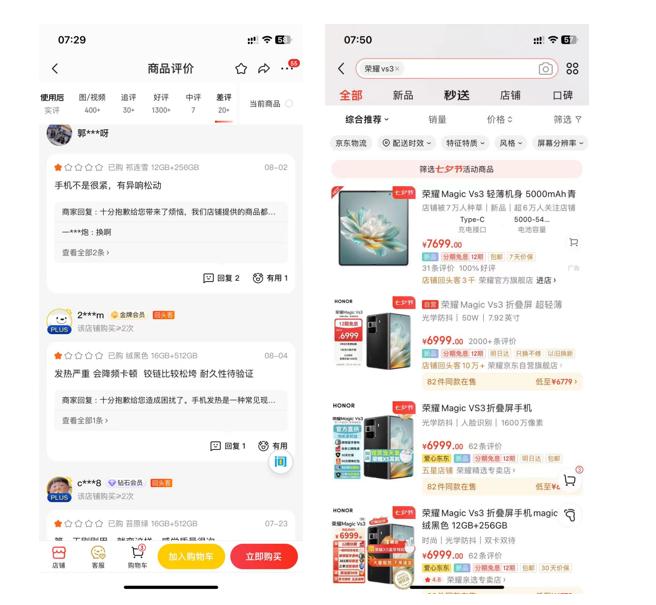 但在京东平台上,不管是荣耀MagicV3和Magic Vs3系列上市后相对较少的评论,侧面说明产品售价过高动销不佳,对瑞声科技出货量拉动有限。还是部分用户称MagicV3手机铰链松垮,异响松动,瑞声科技综合技术能力可能仍需提高。