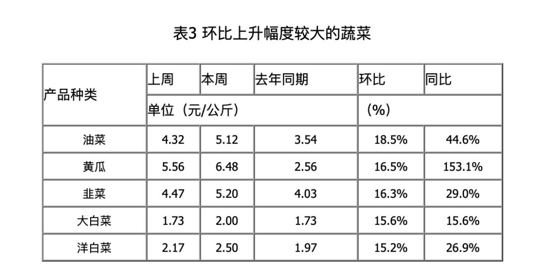 事实上,不止黄瓜,油菜、韭菜等蔬菜价格近期也明显上涨。