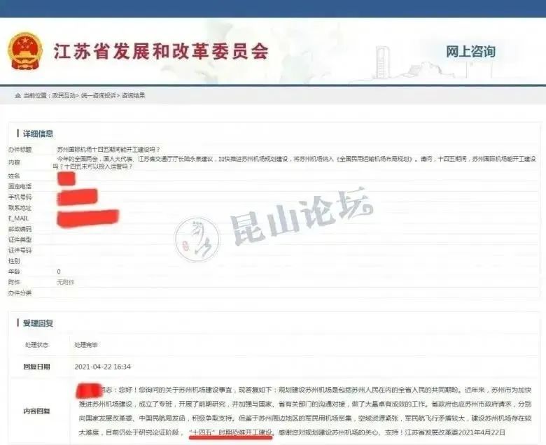 对于苏州机场何时开工建设,江苏发改委曾在2021年回复网友称,“鉴于苏州周边地区的军民用机场密集,空域资源紧张,军民航飞行矛盾较大,建设苏州机场存在较大难度,目前仍处于研究论证阶段,‘十四五’时期恐难开工建设”。