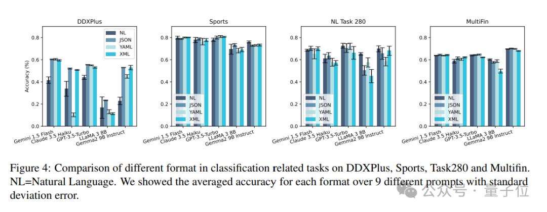 例如,GPT更喜欢YAML格式,Claude更喜欢XML格式,而Gemini/Gemma则更倾向于JSON格式。
