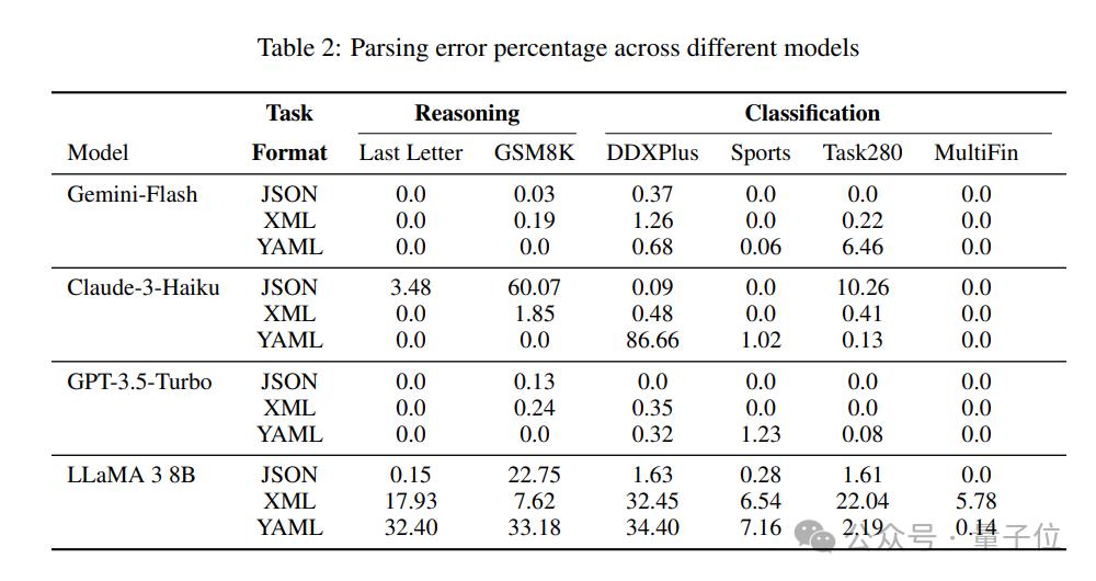 研究还表明,格式限制导致的解析错误不是性能差异的主要原因。