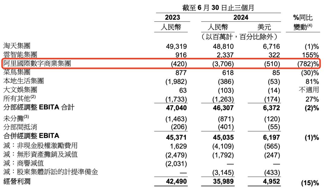 当然,阿里的国际业务还于亏损换增长的阶段。本季度,其亏损从去年同期的4.2亿元拉大到37.06亿元。