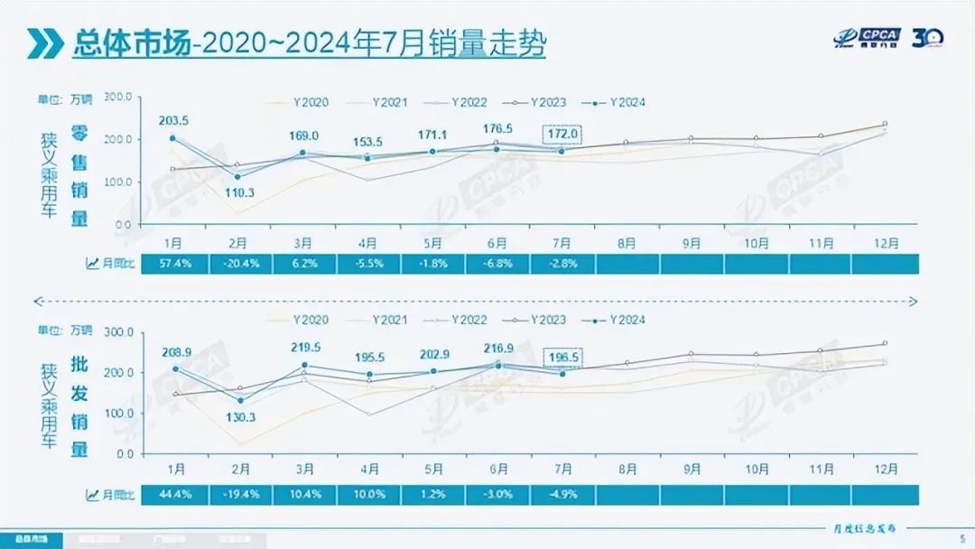 近日,据中国汽车流通协会乘用车市场信息联席分会公布的数据显示,7月中国乘用车零售销量为172万辆,其中新能源乘用车零售87.8万辆,占比达51.1%,新能源乘用车的零售销量首次超过燃油乘用车。