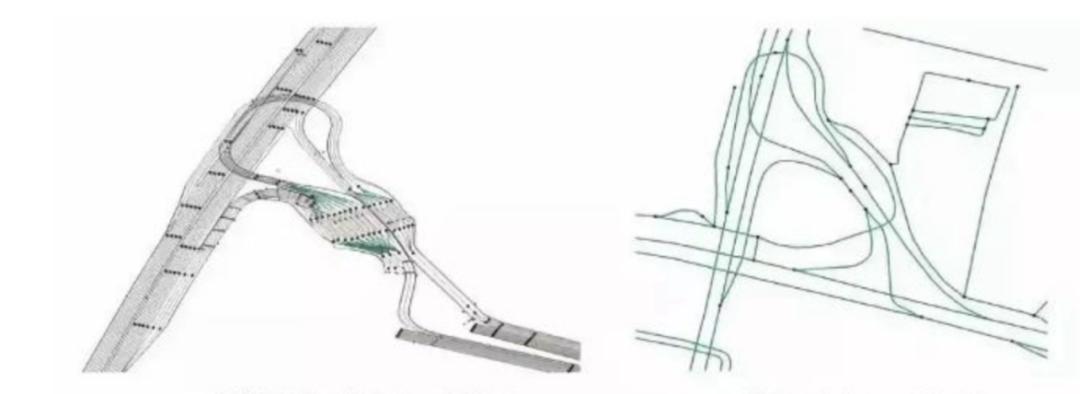 BEV+Transformer解决了自动驾驶车辆对高精地图依赖的问题:高精地图和我们日常用的高德、百度地图不一样(如图20所示),它精确到厘米级别并且包括更多数据维度(道路、车道、高架物体、防护栏、树、道路边缘类型、路边地标等数据信息)。它的成本是很高的,需要时时刻刻保证地图厘米级别的精确性,然而道路的信息总是会有变化的(比如临时施工),所以就需要长时间进行采集测绘工作。而想依靠高精地图实现所有城市场景的自动驾驶,是不现实的。大家现在应该可以在一定程度上理解BEV带来的贡献了(注:特斯拉Lane神经网络同样是摆脱高精地图的关键算法,由于篇幅限制,这里不做过多阐述)