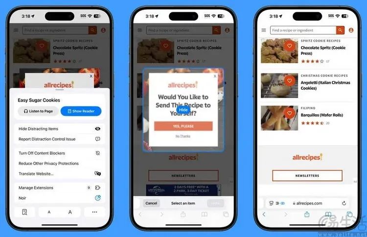 有意思的是,苹果方面还专门强调“分心控制”不是广告拦截器,不会自动识别网页里的广告或弹窗,也不能自动屏蔽它们。要使用这个功能,用户就需要自己指定哪些网页上的内容是他们“不想看到”的,Safari浏览器将屏蔽这部分内容的显示。被屏蔽的对象可以是某个广告条、浮动窗口,甚至是网站弹出的Cookie请求(这样一来,用户就可以在不回答“是否允许Cookie”的前提下浏览网站)。