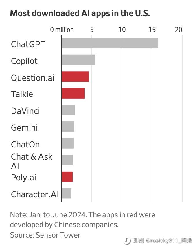 如果你现在看美国APP下载榜单,你会发现很多AI产品,都是国产出品的了。