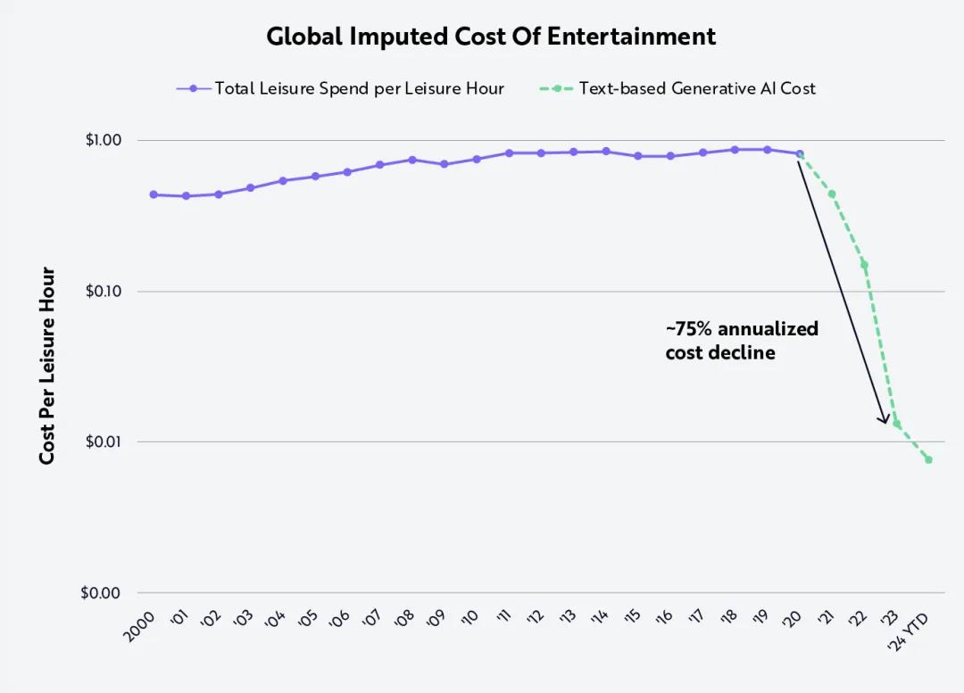 AI社交产品层出不穷,与 LLM 快速发展十分相关。AI带来的消费者娱乐和陪伴的成本每年下降 75%。从 2018 年到 2023 年,AI 陪伴平台的月活跃用户数量增长了 30 倍,从不到 50 万用户增加到大约 1500 万用户。