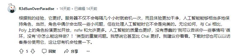 此后,Poly.AI在TikTok渠道投放了大量的动漫博主KOL营销广告,通过“声音”玩梗,在平台上形成了大量传播。 海外网友评论,Poly.AI拥有比C.AI更灵活的角色创建功能、话题场景、更好的角色一致性等。