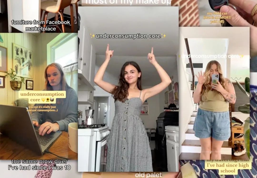 这一趋势被称为“underconsumption core”,指的是一种低欲望消费趋势,TikTok创作者分享他们如何通过少花钱、少买东西、少用东西来避免过度消费。在流行文化中,尤其是在TikTok上,“core”的意思是“审美”或“风格”,经常被用在某种趋势名称的末尾,比如大约20年前开始兴起的“normcore”(极简风)。