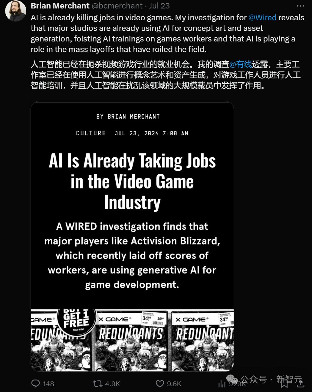 视频游戏行业的打工人,正在遭受AI的暴击!