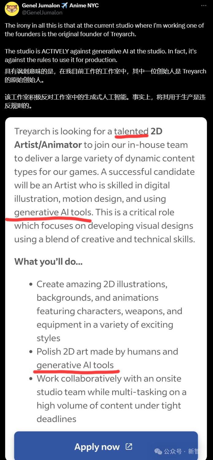 而要求申请者使用生成式AI的概念艺术职位招聘,也越来越普遍。