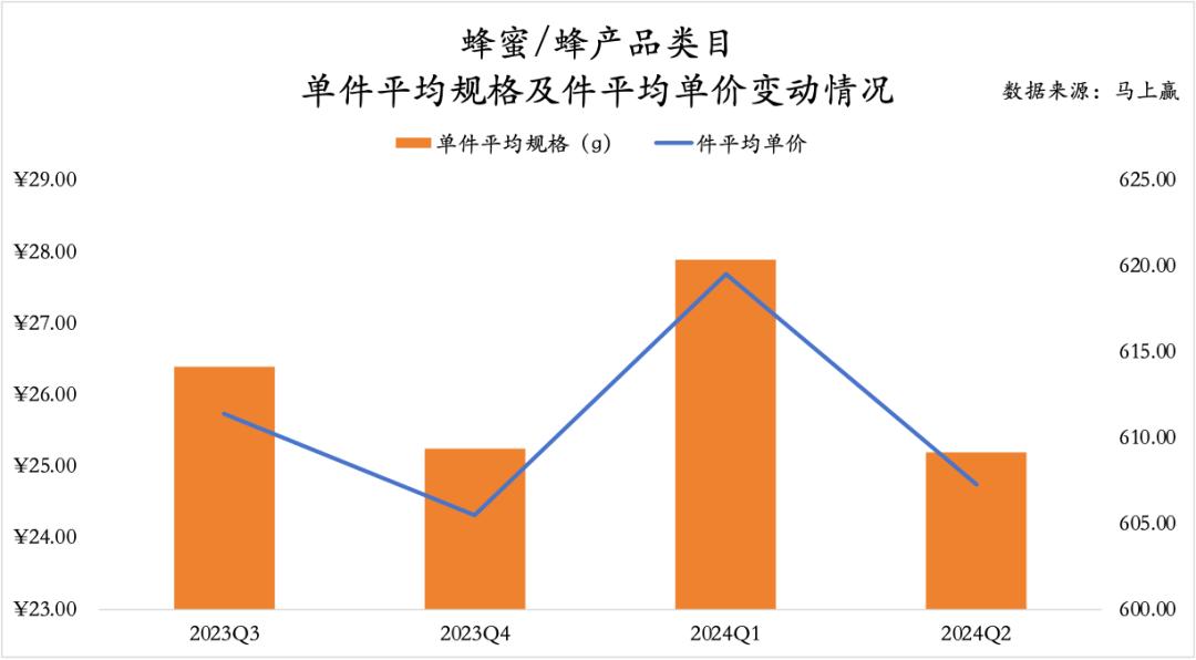 从平均规格与件平均单价的角度看,可以看到两者在2024Q1均有显著的拉升,或与类目产品的礼赠属性与Q1的春节有较强的相关性。2023Q3-2024Q2,排除春节所在的2024Q1外,件平均规格与件平均单价的变动均呈现正相关。