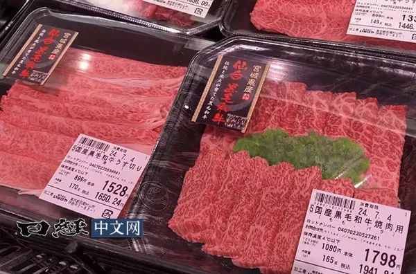 这家超市上架售卖的和牛为每100克1100日元(约合人民币52.9元)。这位女性吐槽说:“什么食材都在涨价,即便想吃也很难下手。就算要买,可能也要等到年末年初(过年)了”。