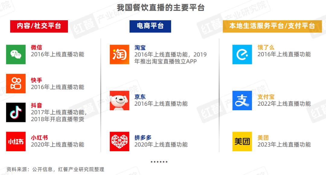 纵观这些平台上线直播功能的时间,大致可追溯至2016年。彼时电商直播兴起不久,平台看中直播的潜力,为商家提供直播的沃土。经过几年时间的发展,小红书、支付宝、美团等平台也跨界涉猎餐饮电商直播的业务。