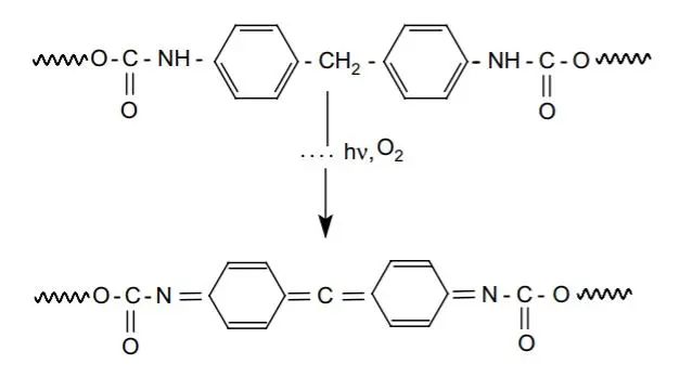 导致变黄最主要的原因是光氧化。在紫外光的作用下,聚合物分子与空气中的氧气发生反应,这会导致分子链断裂,并生成一系列新的分子。在氧化反应的产物中,有一些分子恰好具备能够吸收可见光的发色基团,它们就会显示出颜色。
